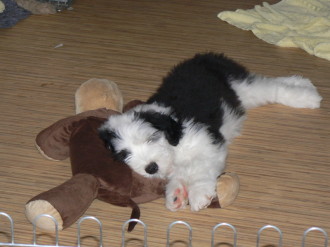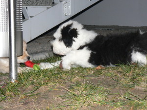 Dort kann er prima mit Vina zusammen spielen. Ich glaube, er mag sie ganz doll gerne. Ist ja auch ´ne hübsche junge Dame. Geschmack hat er, mein Erstgeborener.