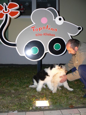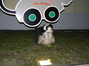 Und da es auch wichtig ist von Gleichaltrigen und nicht nur von erwachsenen Hunden zu lernen, geht er seit kurzer Zeit hier in Klieken in die KITA.