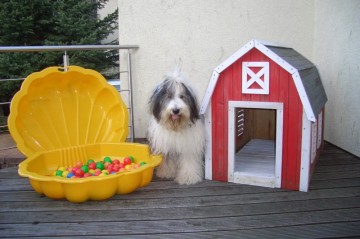 Und dann haben wir alle gemeinsam den Spielplatz draußen aufgebaut. Die Patentanten sind nämlich nicht mit leeren Händen gekommen und wir sind jetzt stolze Besitzer eines Hundehäuschen und eines Bällchenbades.
