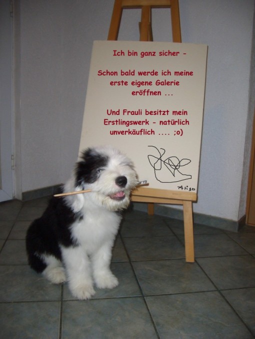 Ach ja - und dann war ja da noch Weihnachten - und wie versprochen, bekam er Pinsel, Farbe und eine Staffelei ...