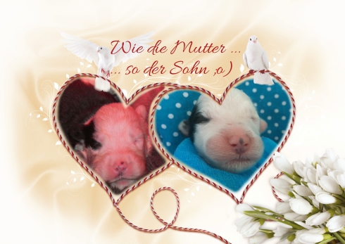 gestern hab ich es nicht geschafft zu schreiben. Ich gehe in meiner Mutterrolle echt auf, ich hab gar keine Zeit mehr für andere Dinge. Frauchen und Mona würden jetzt sagen, ich nehme mir die Zeit dafür nicht. Aber ich kann irgendwie keine Sekunde ohne die Zwerge sein, so verliebt bin ich.